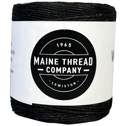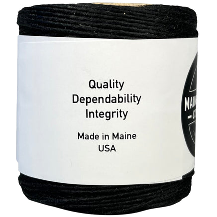 Made in USA by Maine Thread. "We start with yarn that has been textured and dyed. In our factory, we do the rest. We create our different sizes by plying up individual strands of yarn. From there, our thread is twisted, waxed, and either cut to length, or wound on the small spools you see here. From start to finish, our team takes care in each step of the process to ensure our thread maintains the strong quality our customers have depended on for generations. "