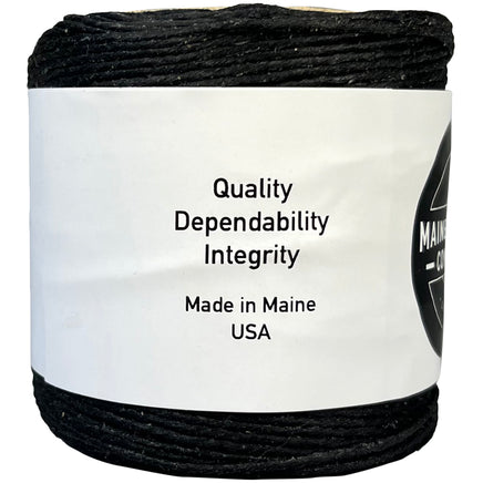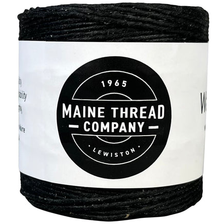 Made in USA by Maine Thread. "We start with yarn that has been textured and dyed. In our factory, we do the rest. We create our different sizes by plying up individual strands of yarn. From there, our thread is twisted, waxed, and either cut to length, or wound on the small spools you see here. From start to finish, our team takes care in each step of the process to ensure our thread maintains the strong quality our customers have depended on for generations. "