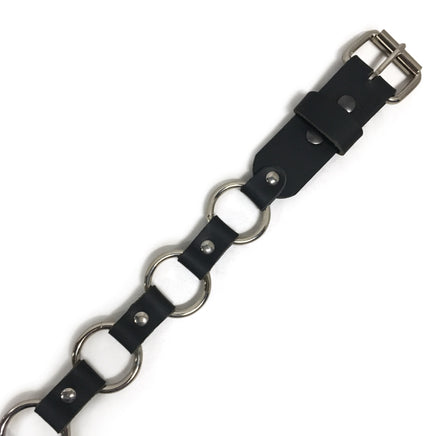 We make these belts with the finest 8/9 ounce Buffalo hides.  This is a solid leather very sturdy belt. The O-rings are welded for extra strength.