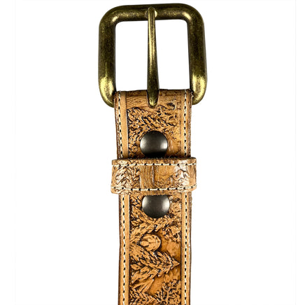 1.5"(38mm) Embossed Full Grain Leather Belt - Wildlife Handmade in Canada by Zelikovitz Size 26-46