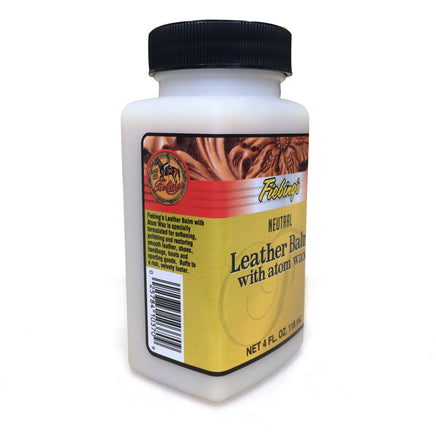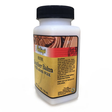 A specially formulated liquid wax finish for coloring, softening and polishing articles of smooth leather. Can be buffed to a rich, soft, velvety luster. Leather Balm with Atom Wax is not a water resistant top finish.