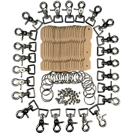 Kit includes Leather and hardware to produce 25 key rings