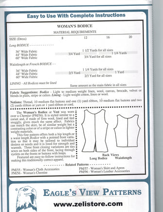 This Pattern features easy-to-follow instructions for making this traditionally correct Woman's Bodice and the glossary of terms allows almost anyone to be comfortable using it.
