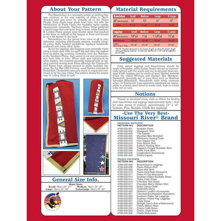 Several fine craftworkers have helped us develop the most authentic and comprehensive Frontier and Indian clothing patterns available. Extensive information includes material requirements, layout, garment making tips, details on tribal styles, variations and decoration of each garment, such as beadwork, ribbonwork, fringe treatment, etc. Our easy-to-follow instructions are complete with detailed illustrations and photos for expert and novice alike.