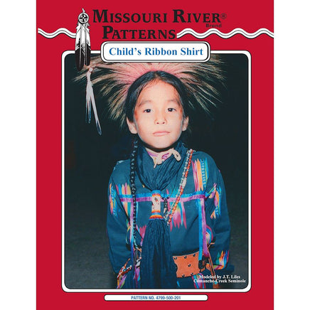 Child's Ribbon Shirt Pattern represents a shirt common to many tribes from east to west. This style shirt is popular with both men and women and has been in vogue since the introduction of cloth to the Indian trade.