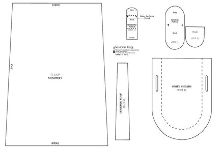 Our Indian Woman's Accessories pattern consists of several patterns with illustrated instructions. Northern and Southern belt sets (strike-a-light, awl and knife cases), mirror bag, large knife sheath, Northern Plains leggings, medicine pouch and buckskin purse are all featured.