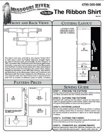 Ribbon Shirt Pattern respresents a shirt common to many tribes from east to west. This style shirt is popular with both men and women and has been in vogue since the introduction of cloth to the Indian trade. Will produce sizes S, M, L, XL & XXL.