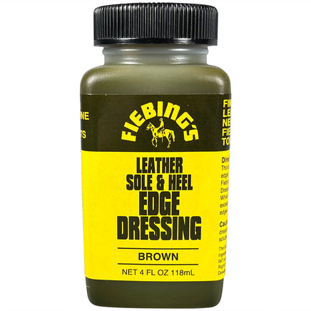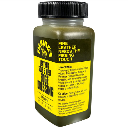 Fiebing's Leather Sole & Heel Edge Dressing, 4 Oz. Gloss Shoe Dressing - A high gloss dressing for leather soles and heels. Used by shoe care professionals for nearly a century. The perfect finish to any shoe shine.