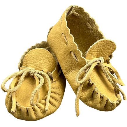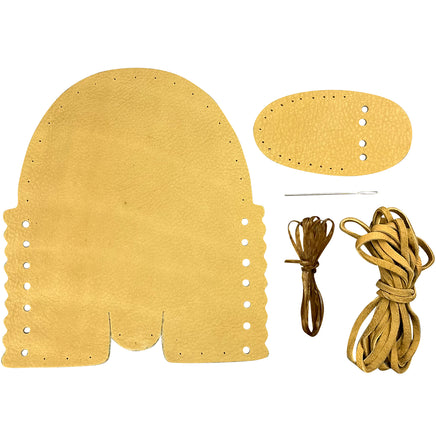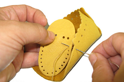 Baby's 1st Moccasin Kit . This easy to make kit is a must for any new addition to the family. All parts are pre-cut and pre-punched, ready for stitching. The kit is made from soft genuine Deertan leather . Each kit contains pre-cut, pre-punched leather parts, needle, waxed thread(sinew), suede leather lace and instructions.