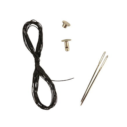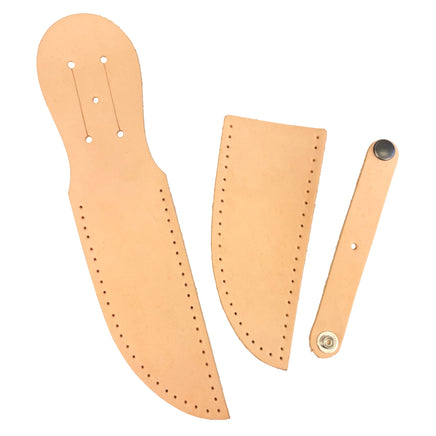 Fits up to 5" long blades and up to 1-1/2" belt. Kit includes pre-punched tooling leather parts, pre-attached snap, thread, needles, hardware and instructions.