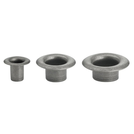 Decorative and functional eyelets used to prevent holes from tearing in leather.