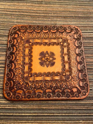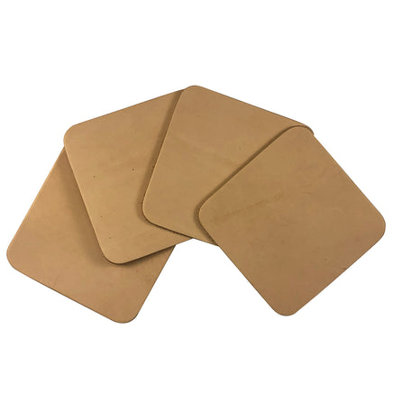 We cut these 4" (102mm) pieces from 7/8 ounce tooling leather.