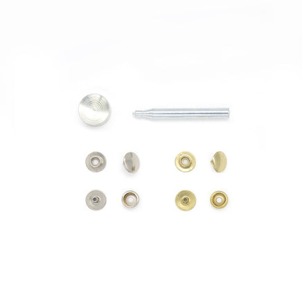 This set includes 10 brass and 10 nickel Line 20 snaps, a setter, and an anvil. Perfect for leather, fabric, canvas, and more-everything you need to add hardware to your projects.